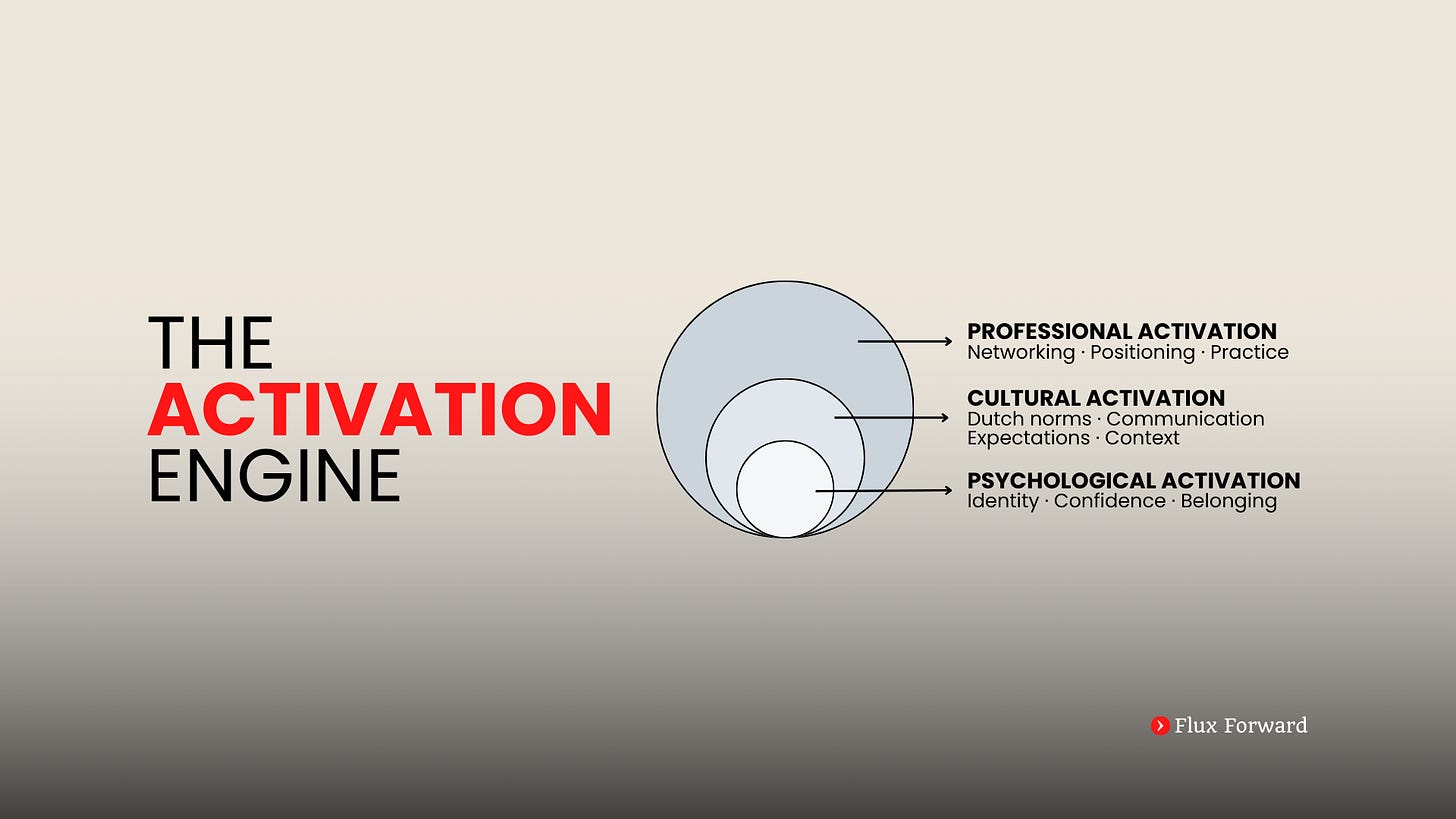 Most programs focus only on the third layer. CVs. Jobs. Skills. Interviews. But without the full Activation Engine, this approach stays incomplete. This is why so much international talent remains underutilized. Not because of a lack of ability, but because activation is partial.